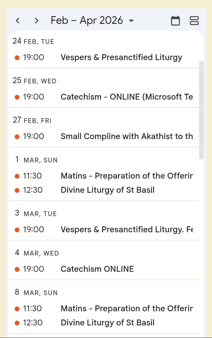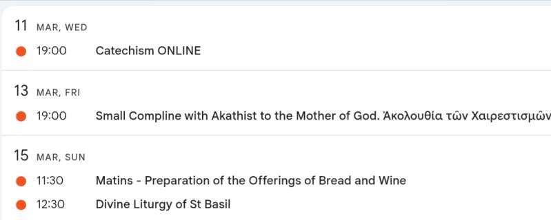 - 11:30 - Matins & Preparation of the Gifts of Bread and Wine
