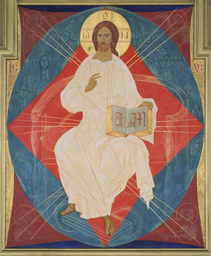 Icon of Christ in Glory, egg tempera on panel by St Sophrony, Tolleshunt Knights, 1974.